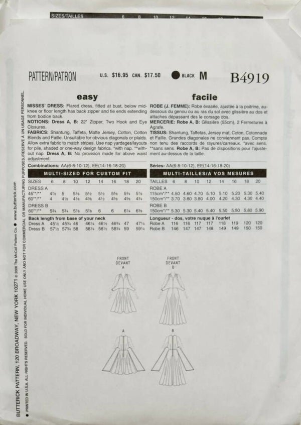 Butterick B4919 Retro '52 Mooie jaren 50 jurk in twee variaties.