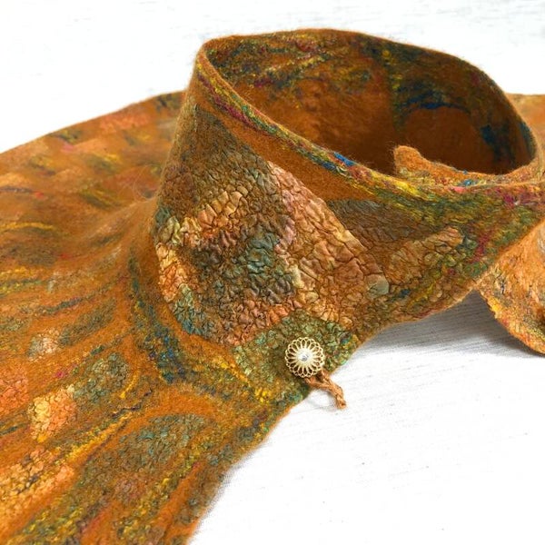 Veelzijdige handgevilte kraag, perfect voor elke outfit. Draag het over een jeansjasje of bij een eenvoudig jurkje.
