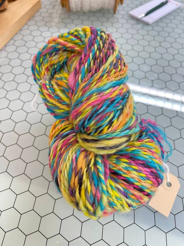 Dit kleurrijke garen is met de hand gesponnen en biedt een boeiende mix van kleuren en texturen die het ideaal maken voor al je projecten. De combinatie van merino wol van 19 micron en een toevoeging van 15-20% zijde geeft dit garen een luxe uitstraling en een zachte aanraking die bijzonder prettig aanvoelt op de huid.