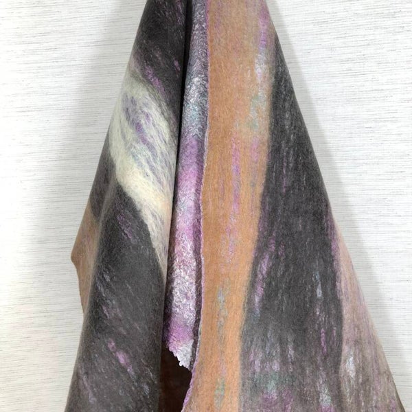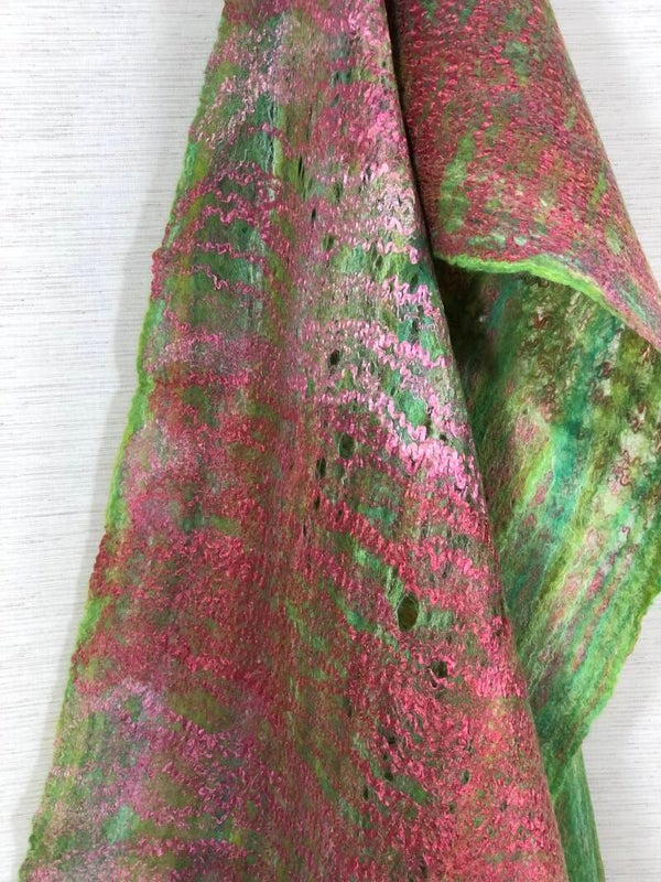 Creëer je eigen unieke vilten sjaal in deze praktische workshop. Je werkt met een mix van handgeverfde merinoswol/zijde en zijden chiffon om een lichte, soepel vallende sjaal te maken.