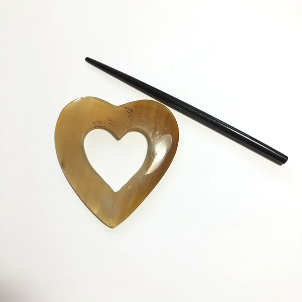 De vestsluiting in de vorm van een hartje is van hoorn, 8cm