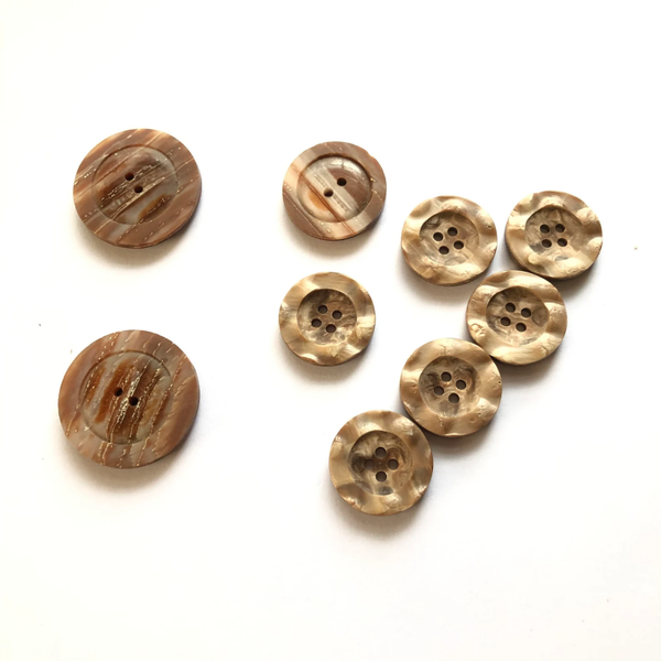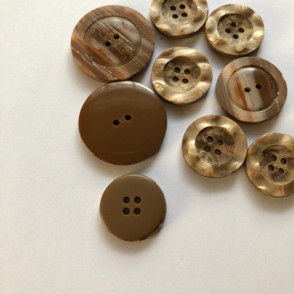 Mooie mix van verschillende knopen bruin gemêleerd . Maten zijn tussen 28mm en 20mm, 9 stuks