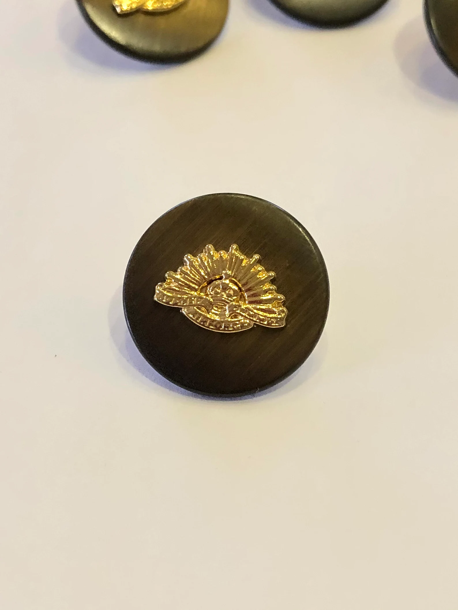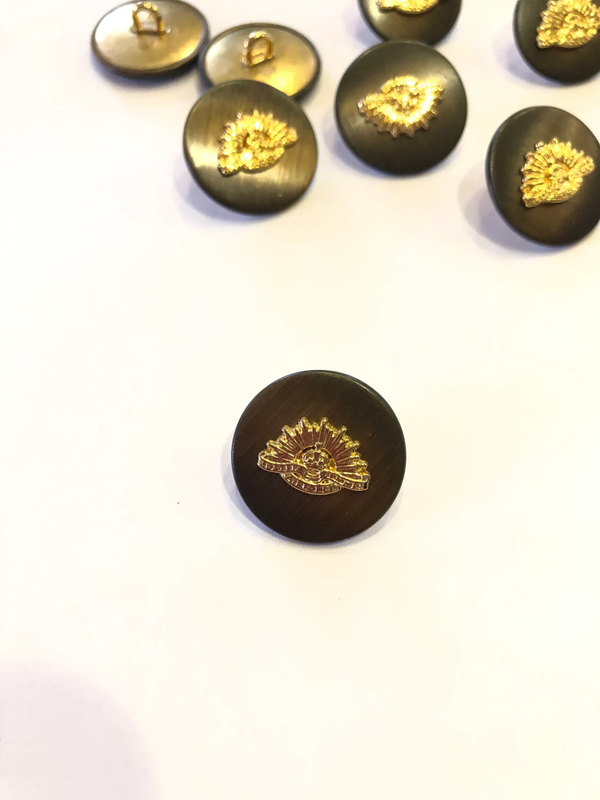 Mooi elegante knopen in een donker chocolade bruin kleur met gouden versiering. 20mm/0,78inch Verpakt per 10 stuks